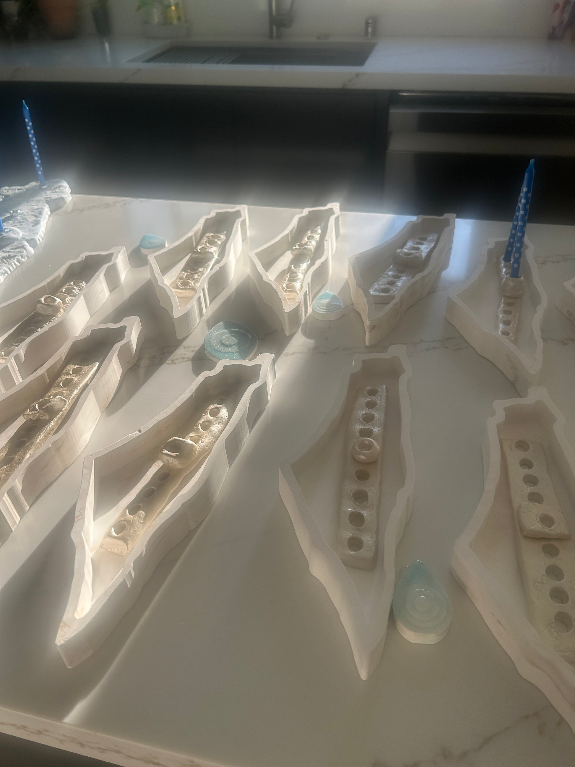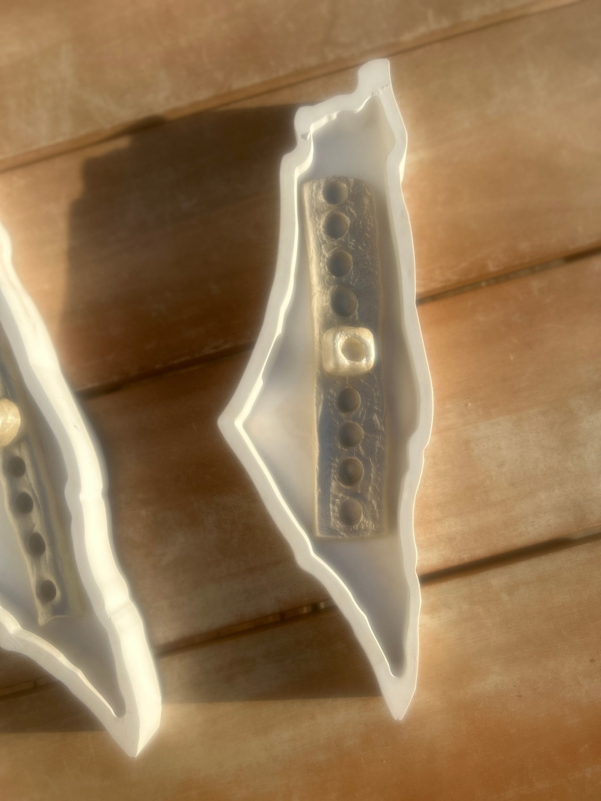 Celebrate Hanukkah with this meaningful Menorah shaped like the map of Israel. Crafted from durable polymer and resin with elegant marble look adding a heartfelt dimension to your Festival of Lights. Customize your menorah’s color at no extra cost, making it a unique and personal centerpiece. Measuring 12"x4"x1", it combines tradition with thoughtful design to brighten your holiday season. Price including one Menorah.