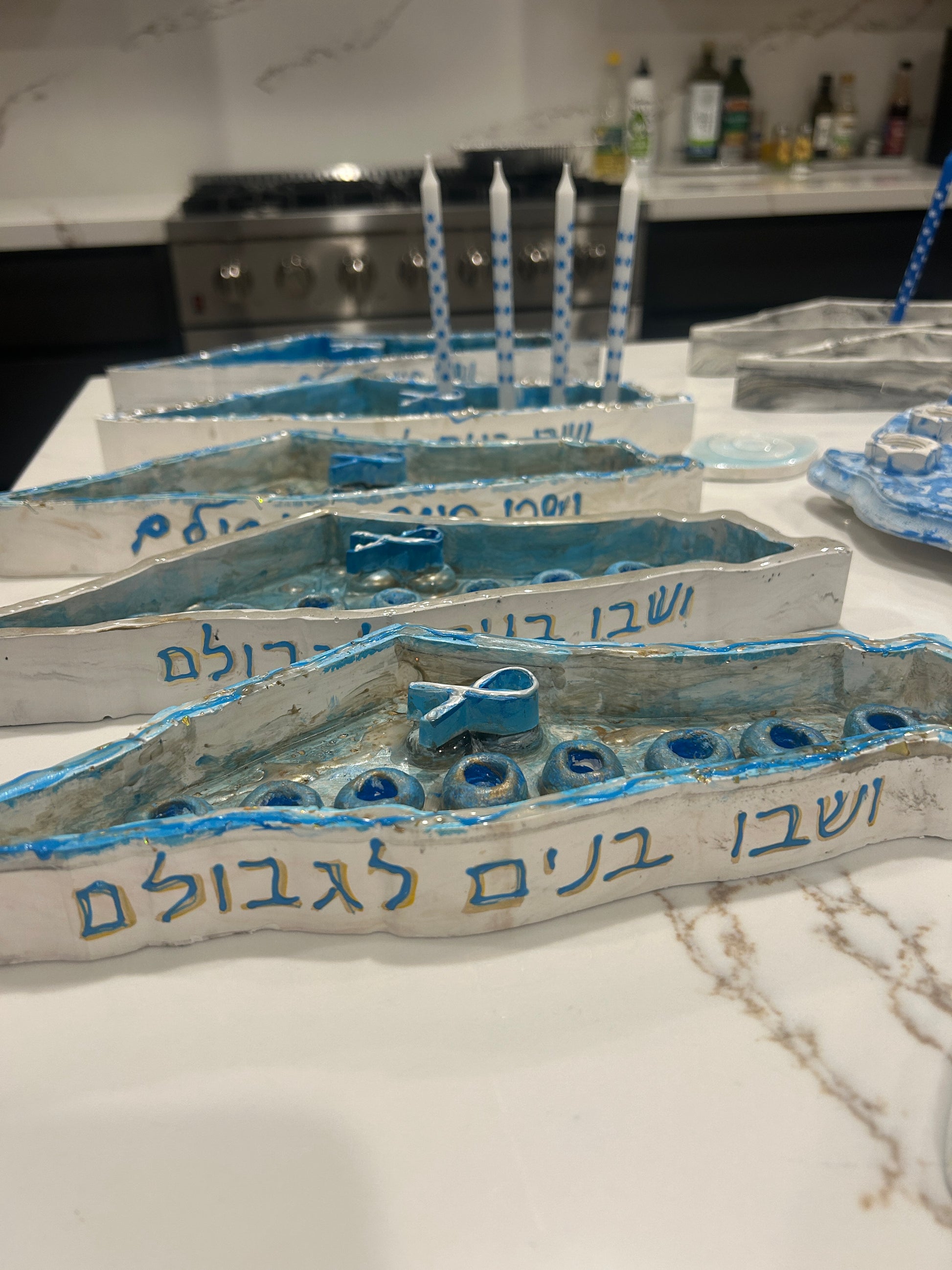 Celebrate Hanukkah with this meaningful Menorah shaped like the map of Israel. Crafted from durable polymer and resin with elegant marble look adding a heartfelt dimension to your Festival of Lights. Customize your menorah’s color at no extra cost, making it a unique and personal centerpiece. Measuring 12"x4"x1", it combines tradition with thoughtful design to brighten your holiday season. Price including one Menorah.