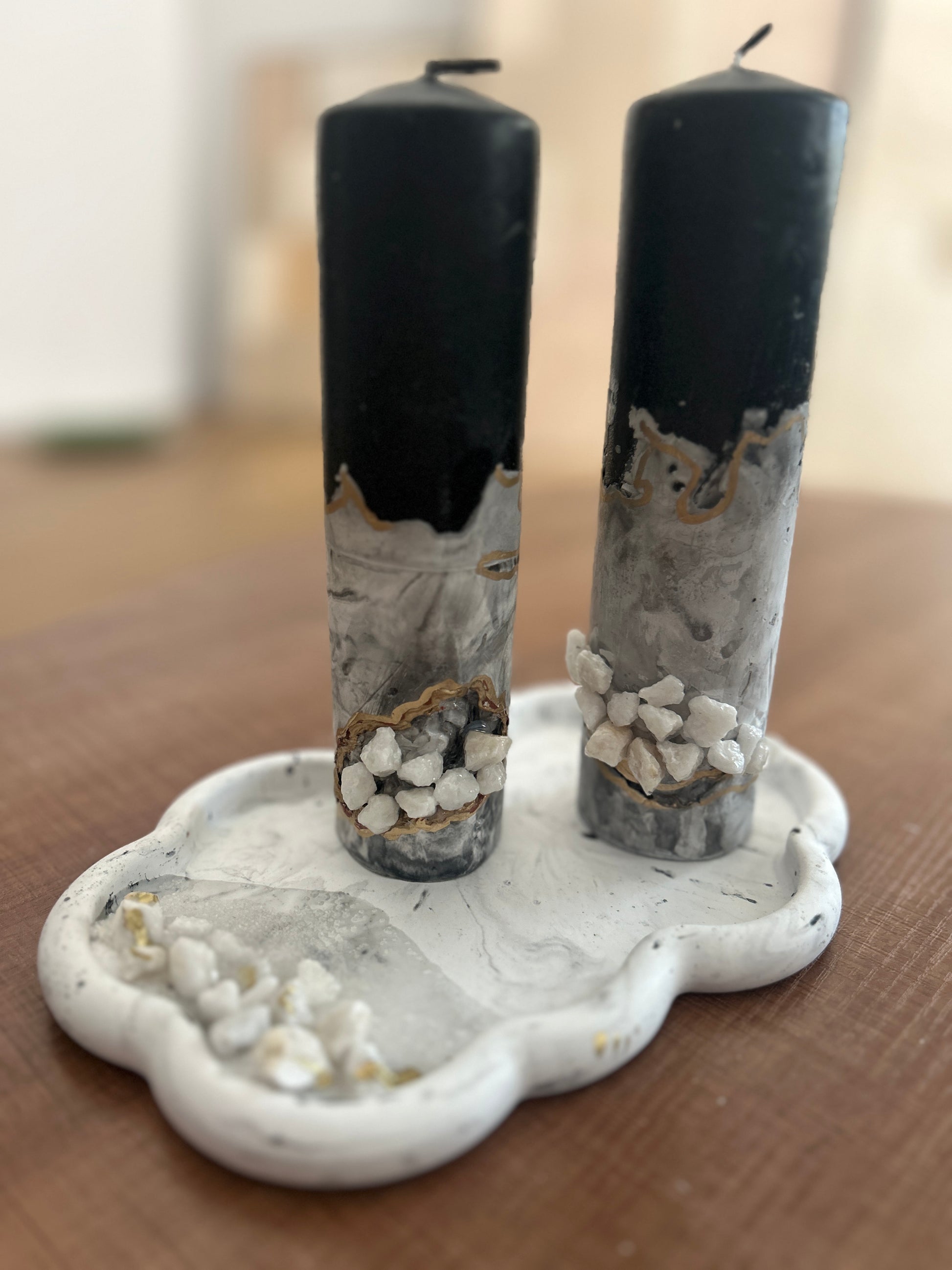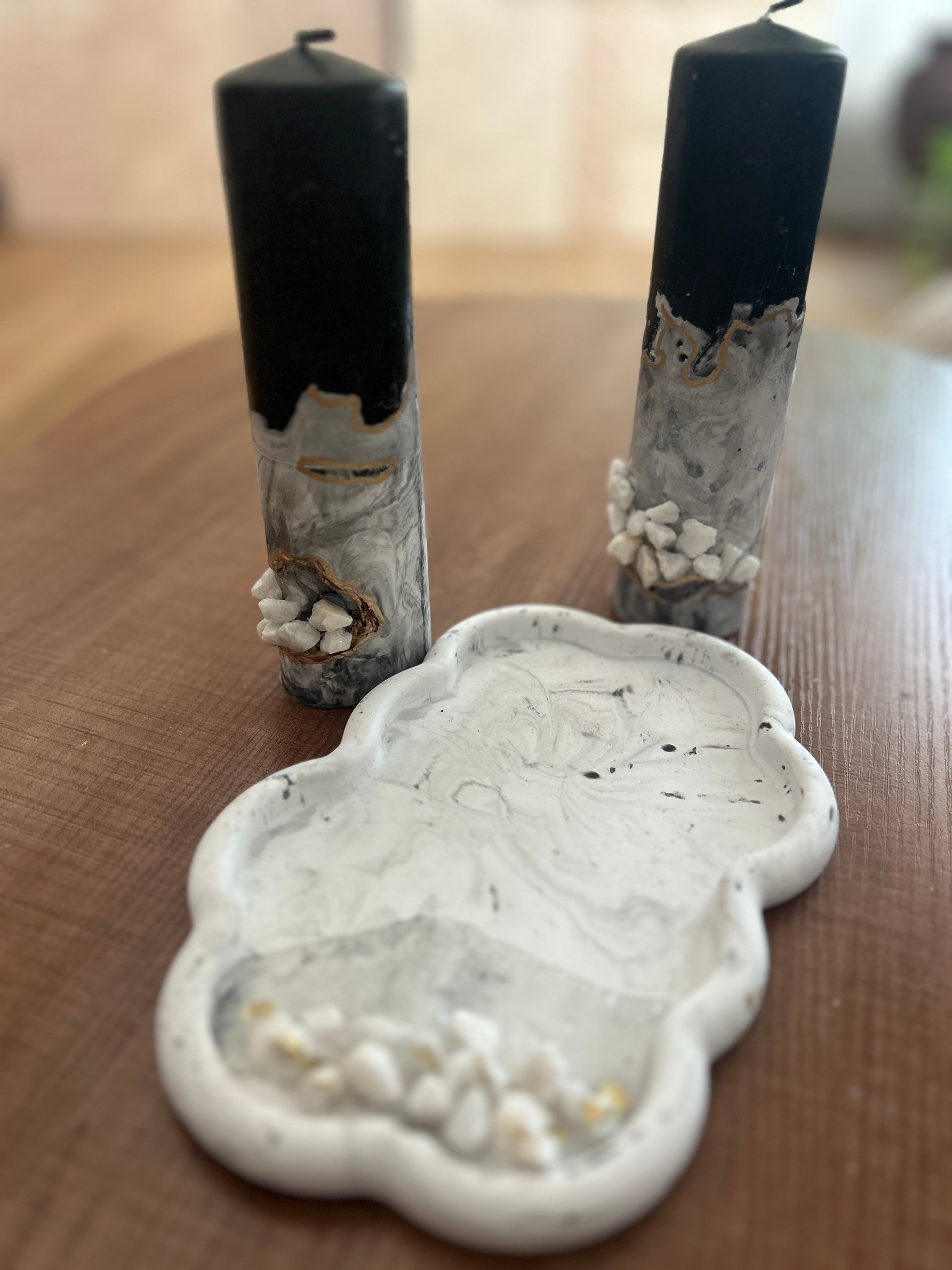 Geode inspiration Marble two Candles & a tray