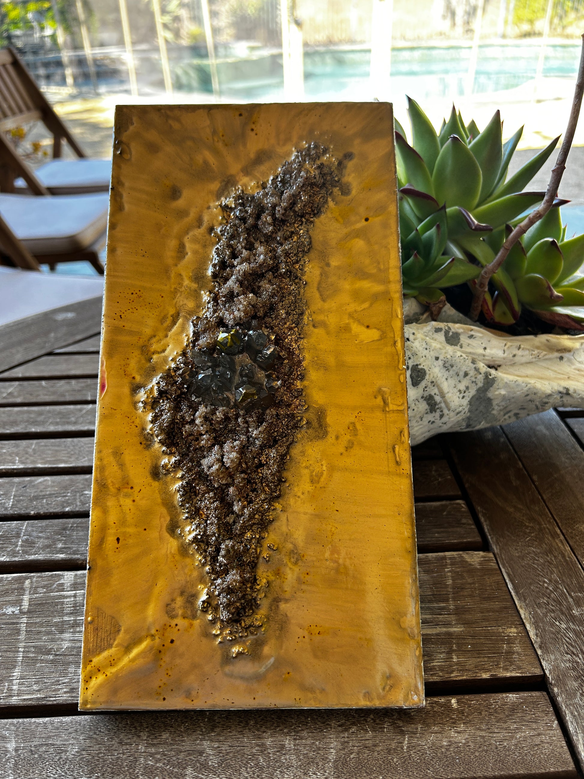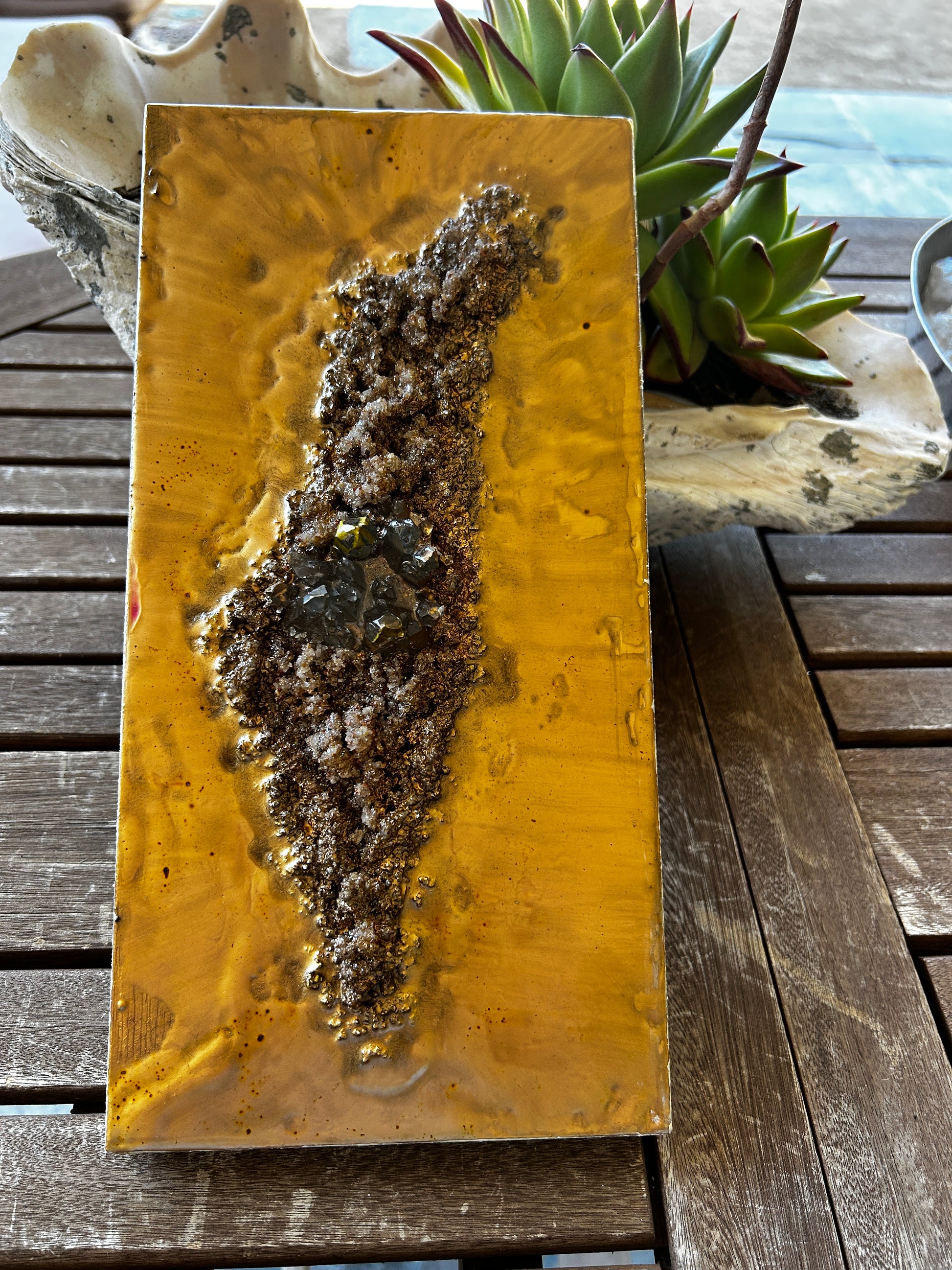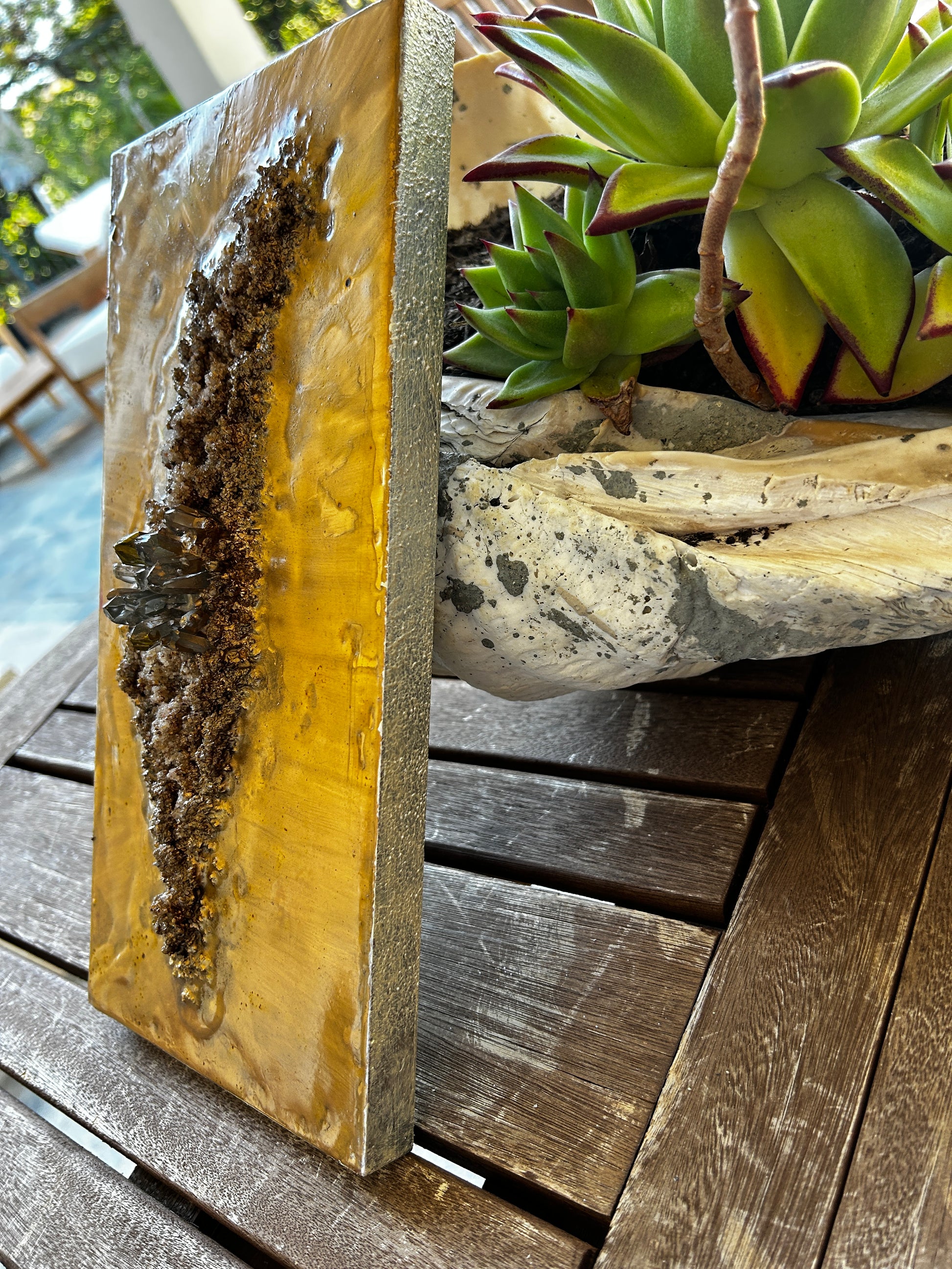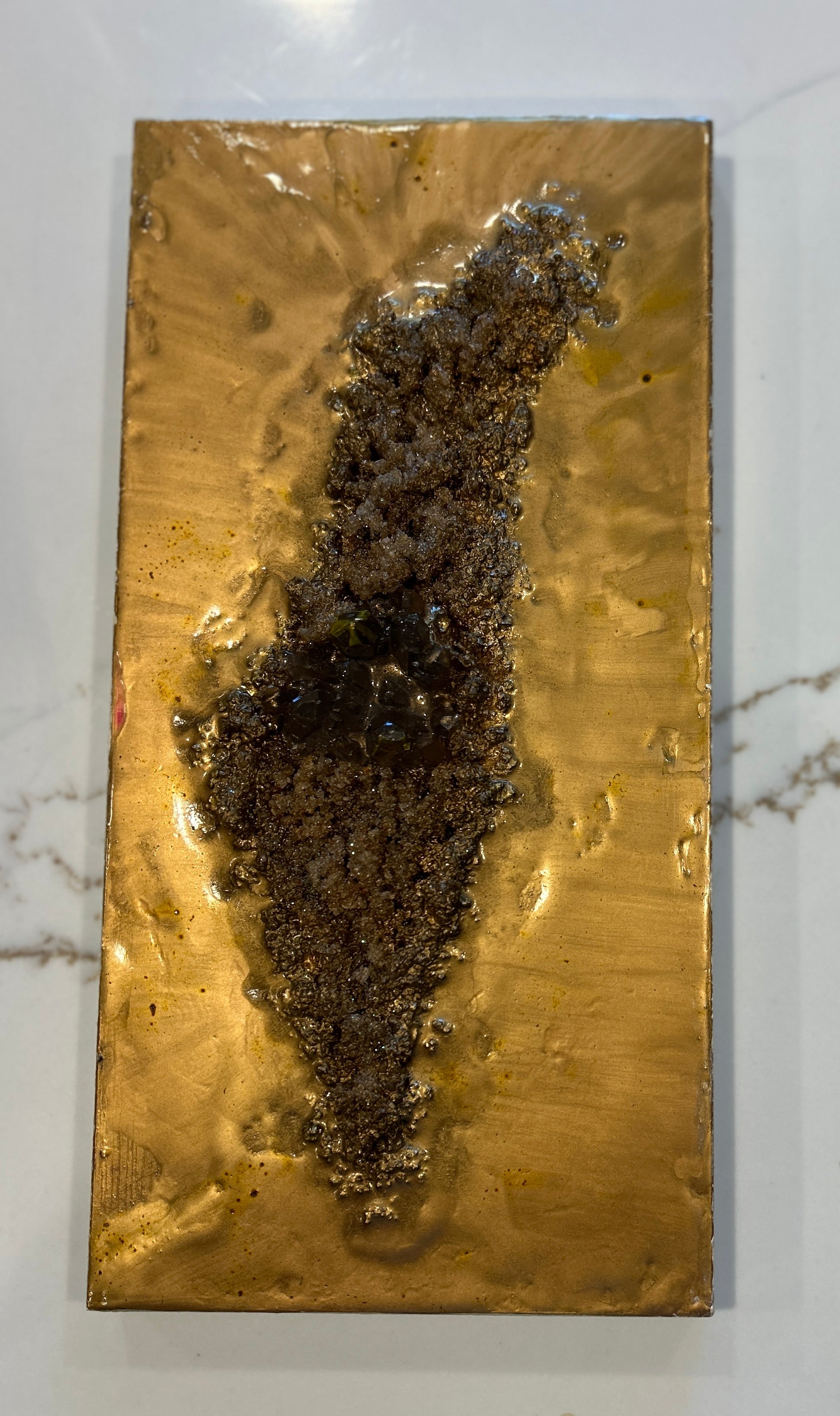 The Painting Israel Chrome Geode Vibe is a sophisticated handmade artwork combining subtle tones with striking chrome highlights. Meticulously crafted using acrylic and epoxy on wood, it features a detailed, textured background that adds depth and elegance. Measuring 6" x 12" x 3/4", this piece elevates any space with its refined presence. Enjoy complimentary shipping for a convenient and effortless acquisition.