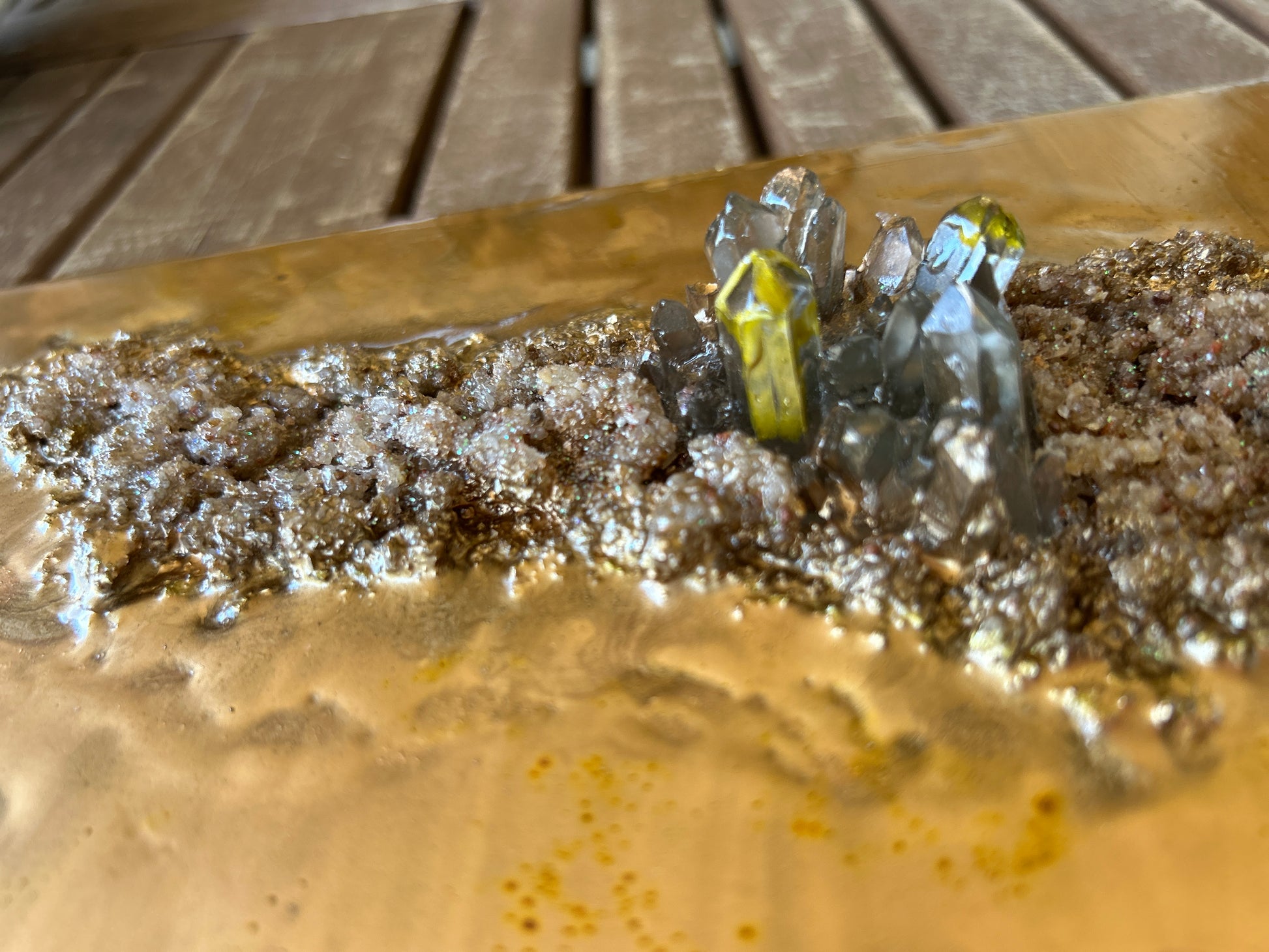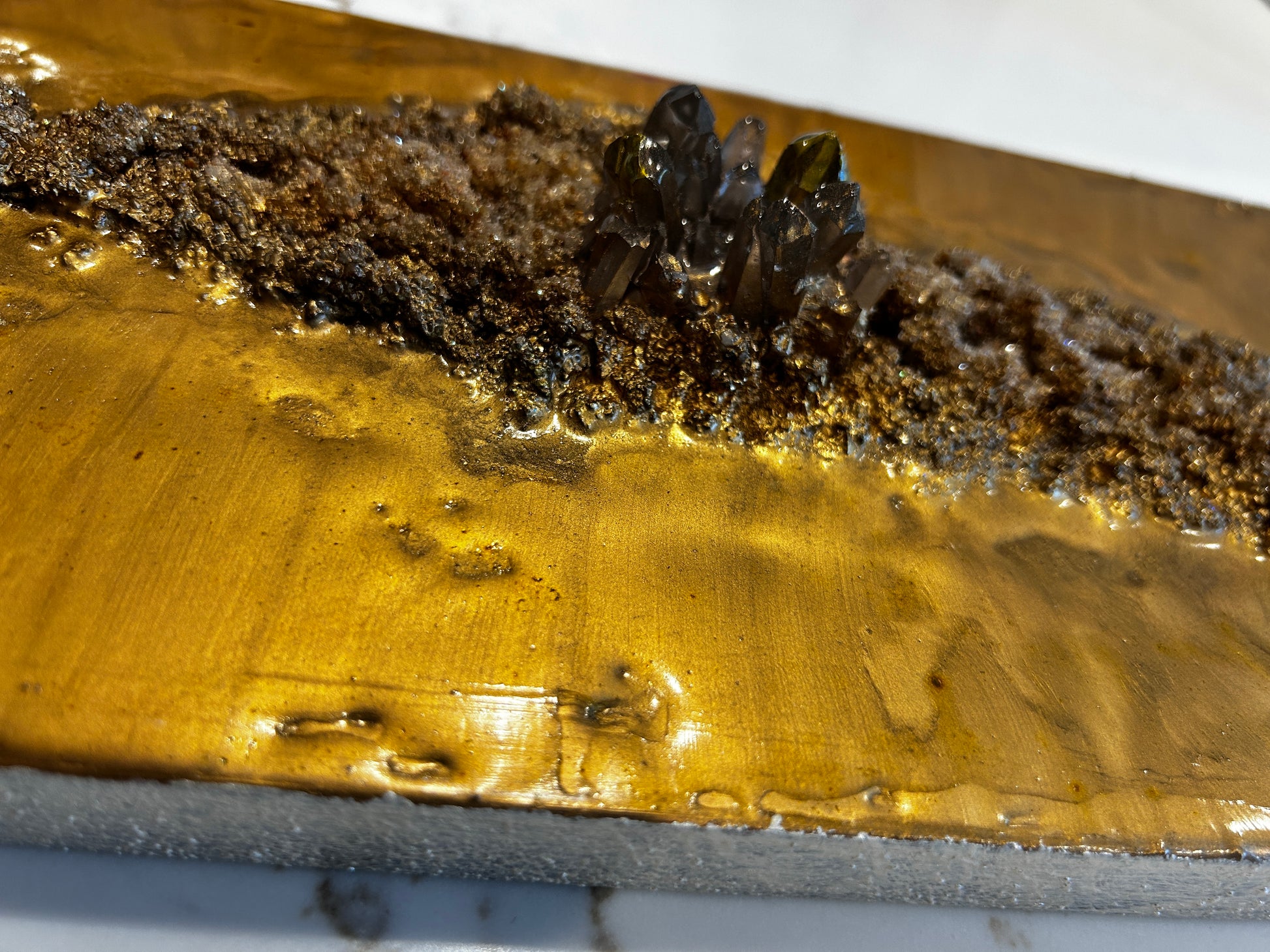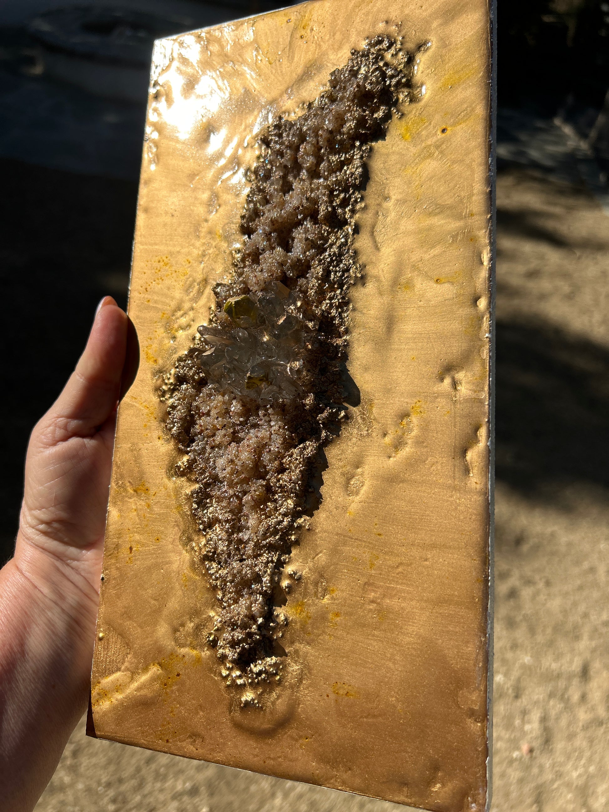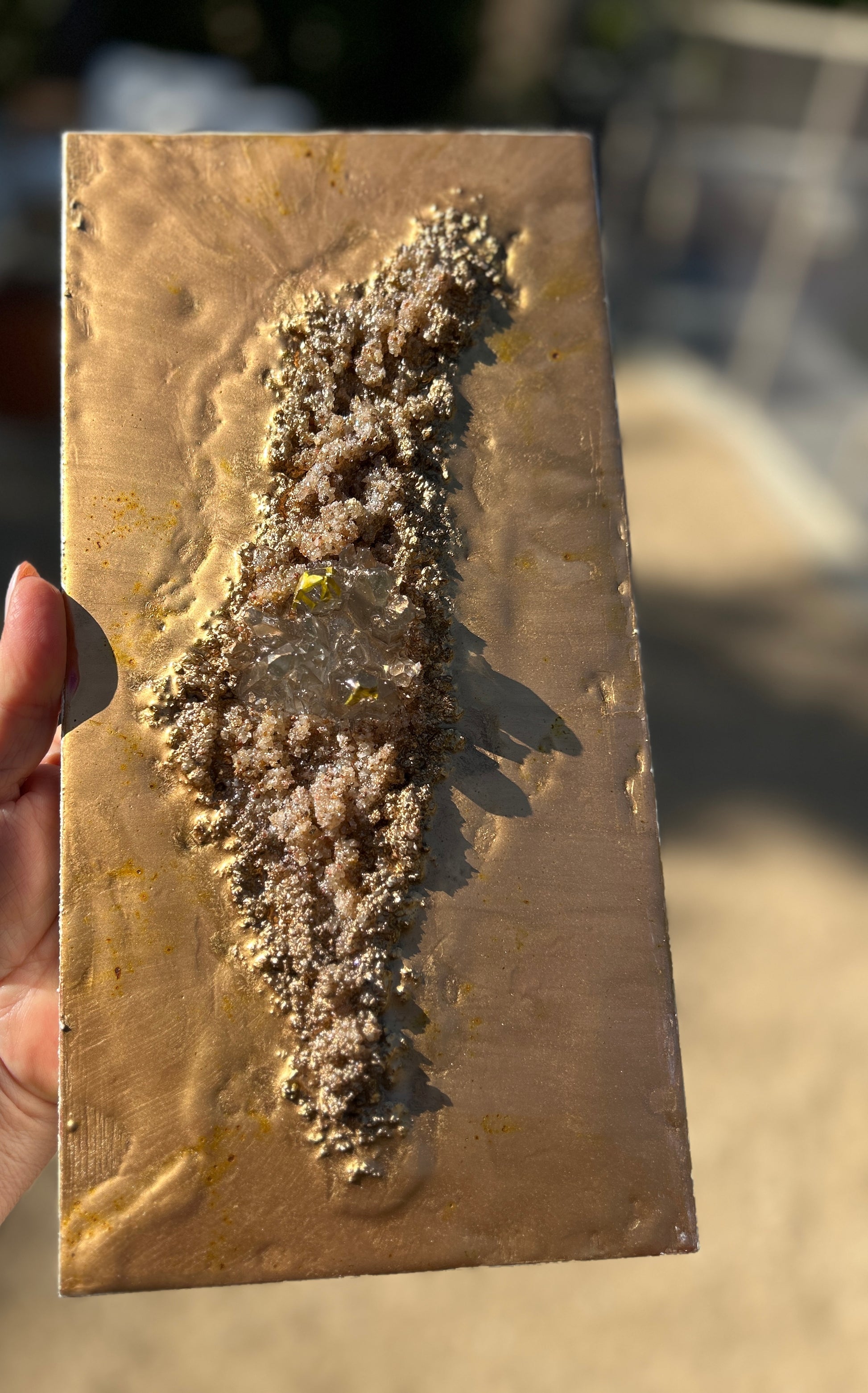 The Painting Israel Chrome Geode Vibe is a sophisticated handmade artwork combining subtle tones with striking chrome highlights. Meticulously crafted using acrylic and epoxy on wood, it features a detailed, textured background that adds depth and elegance. Measuring 6" x 12" x 3/4", this piece elevates any space with its refined presence. Enjoy complimentary shipping for a convenient and effortless acquisition.