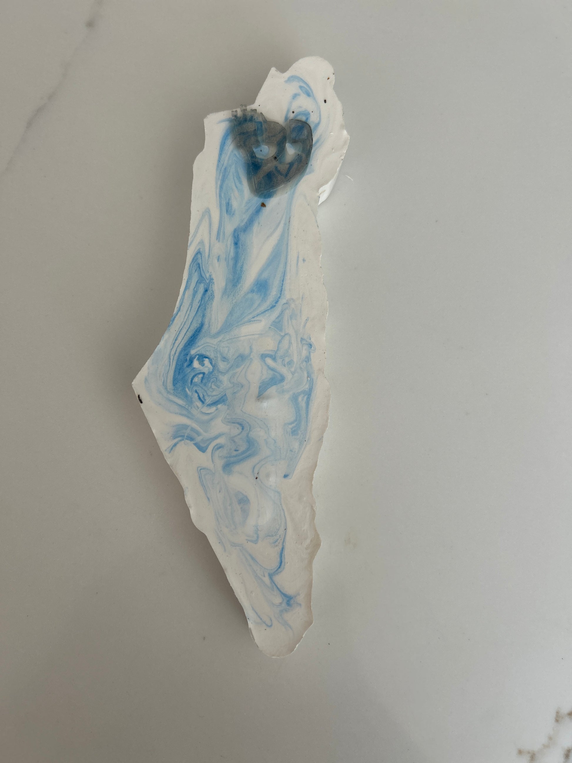 Mezuzah blue Marble in the shape of the Map of Israel