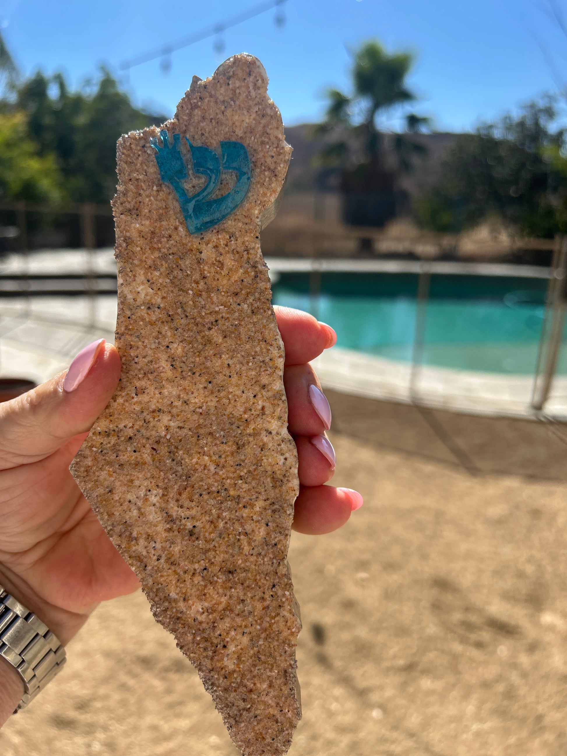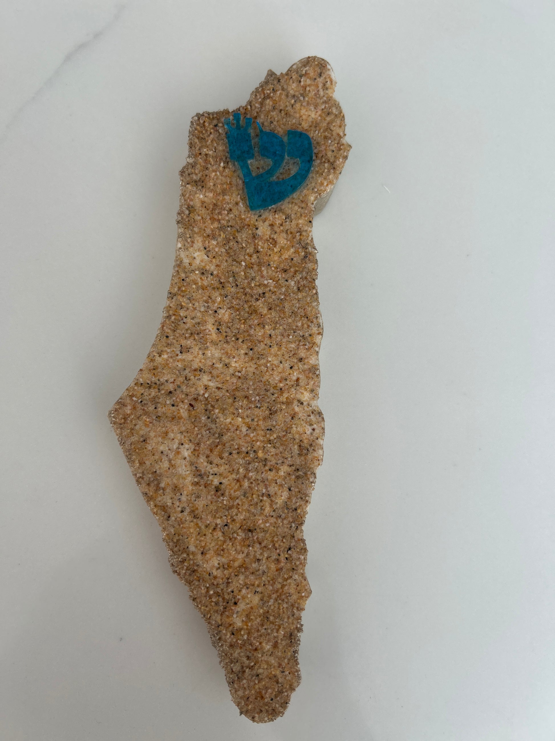 Mezuzah Case Sand and Gold in the shape of the Map of Israel