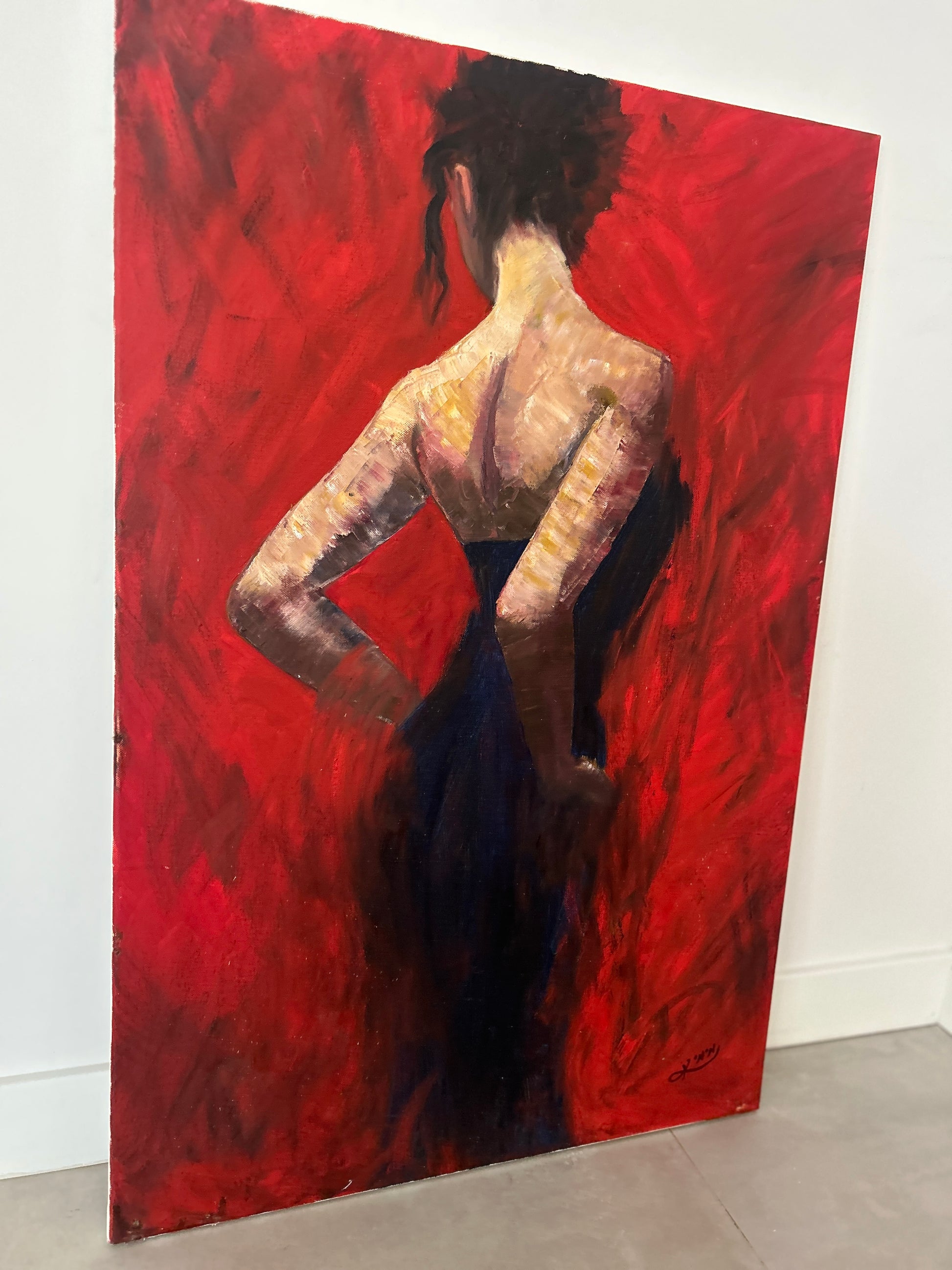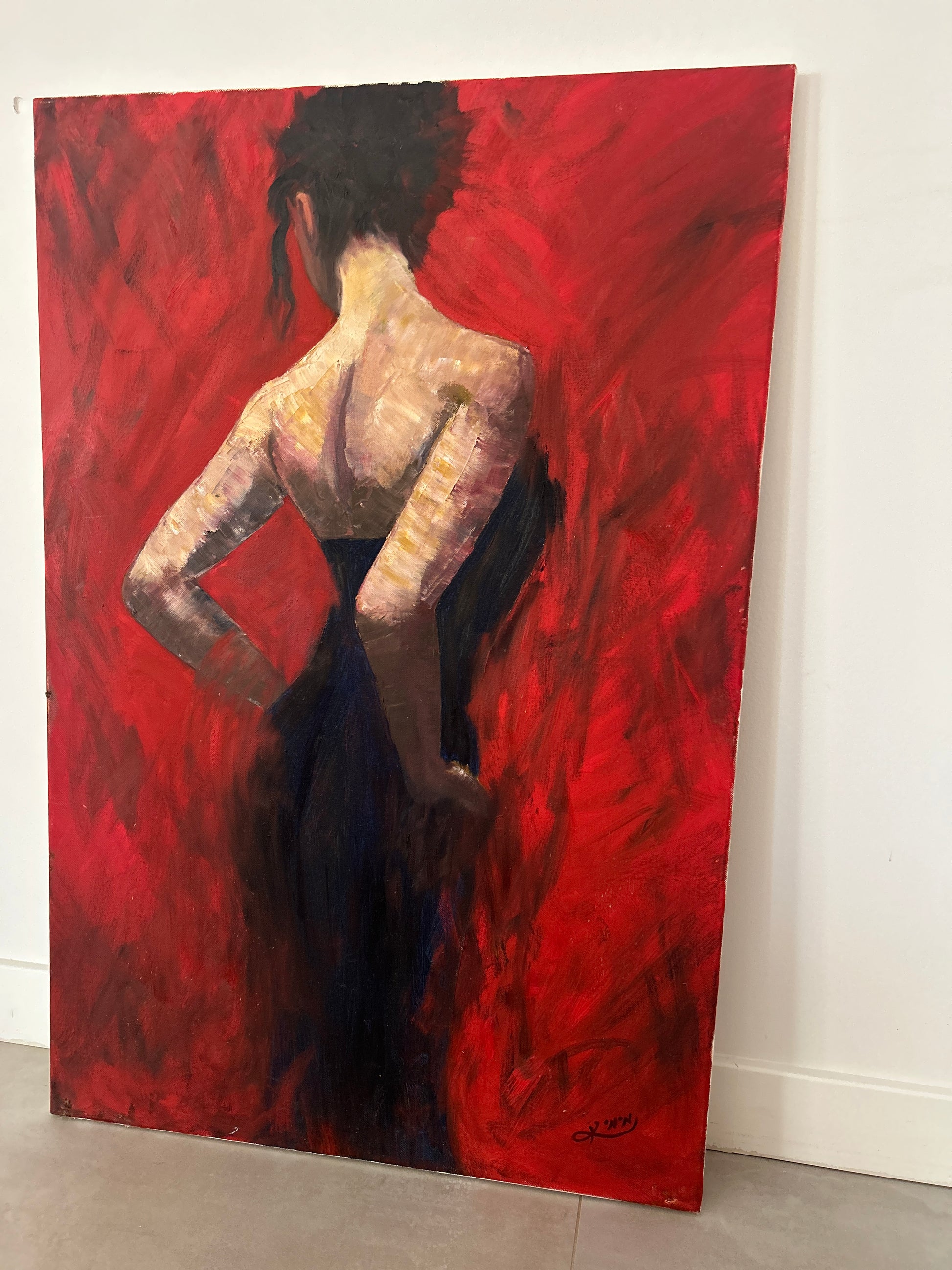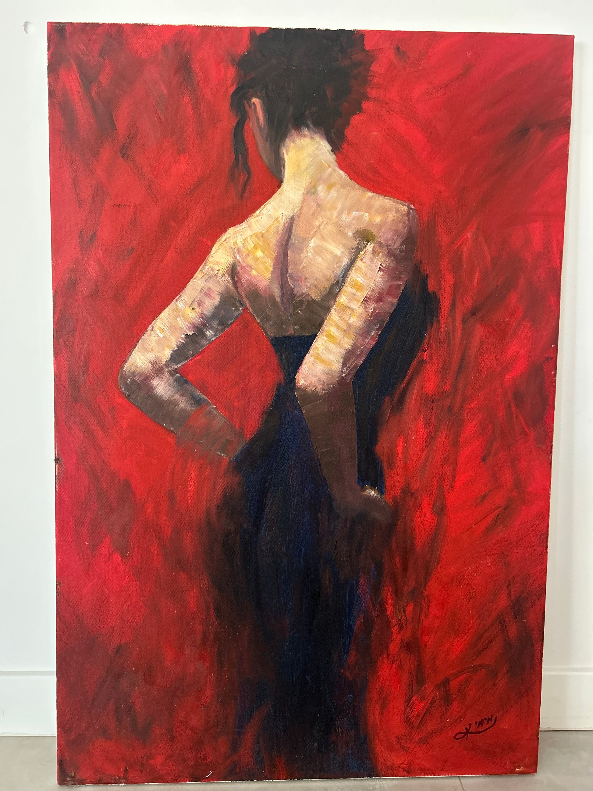 This 24"x36" acrylic painting on canvas features an elegant depiction of a dancing woman. Price is included shipping.