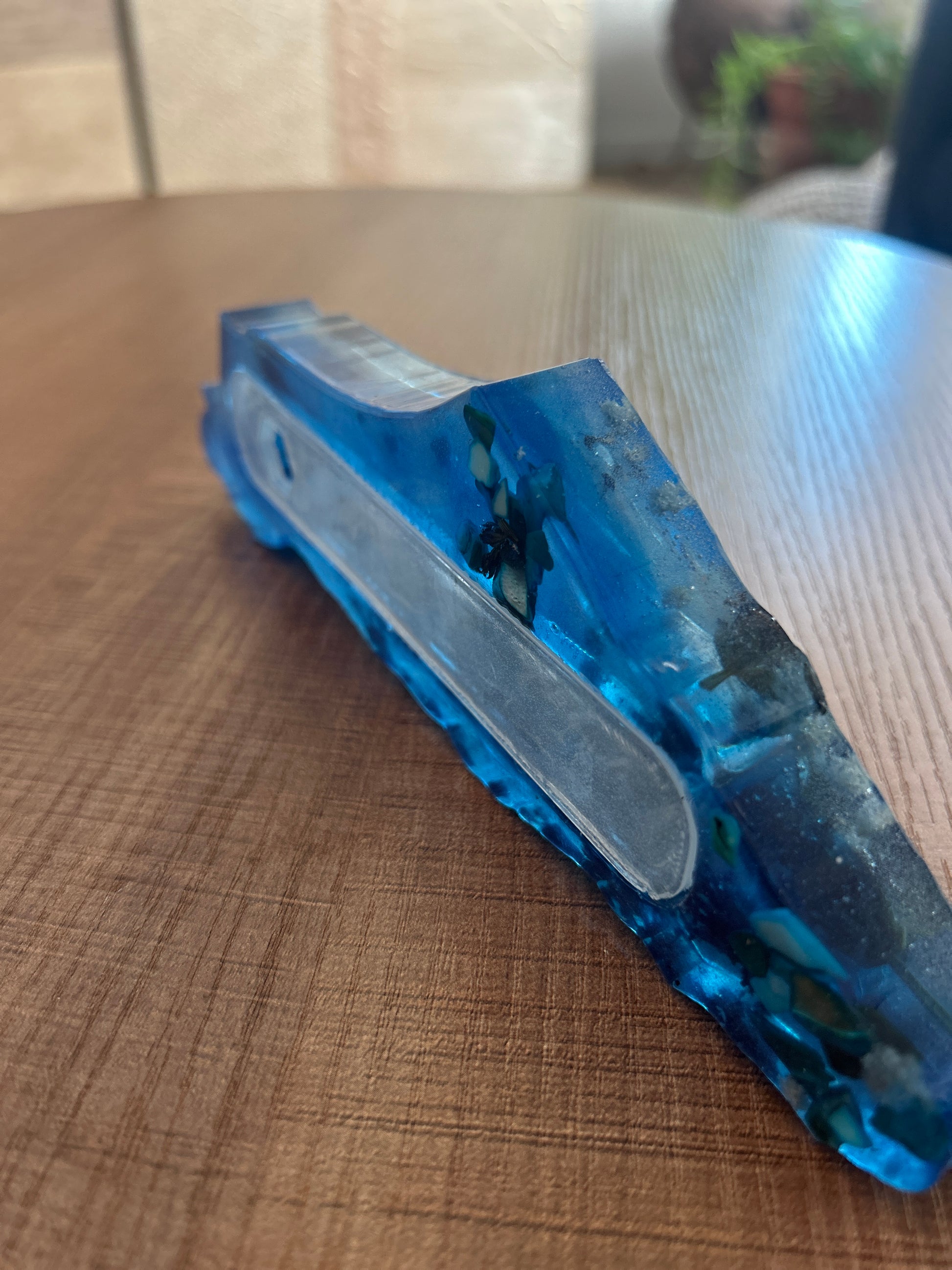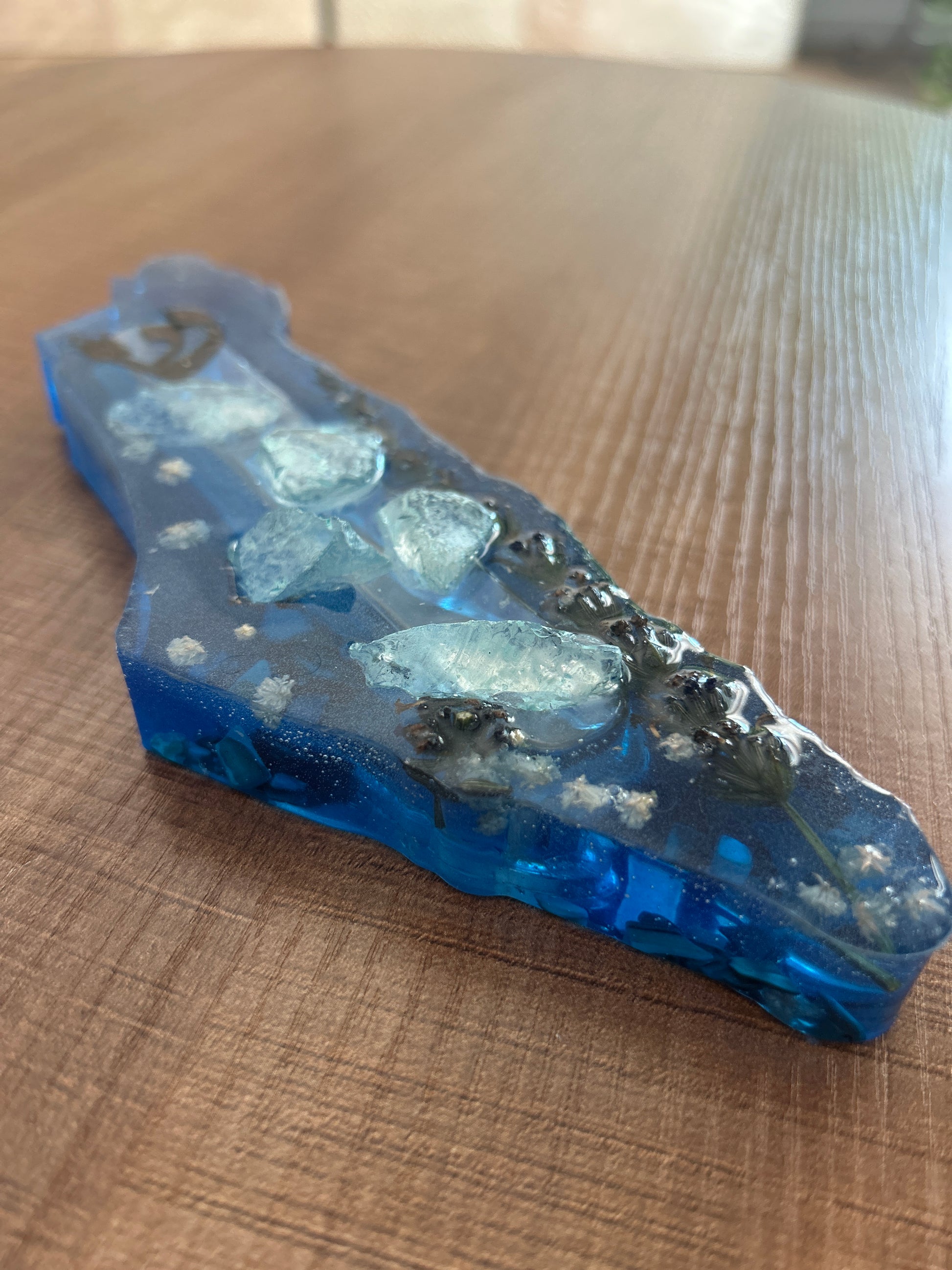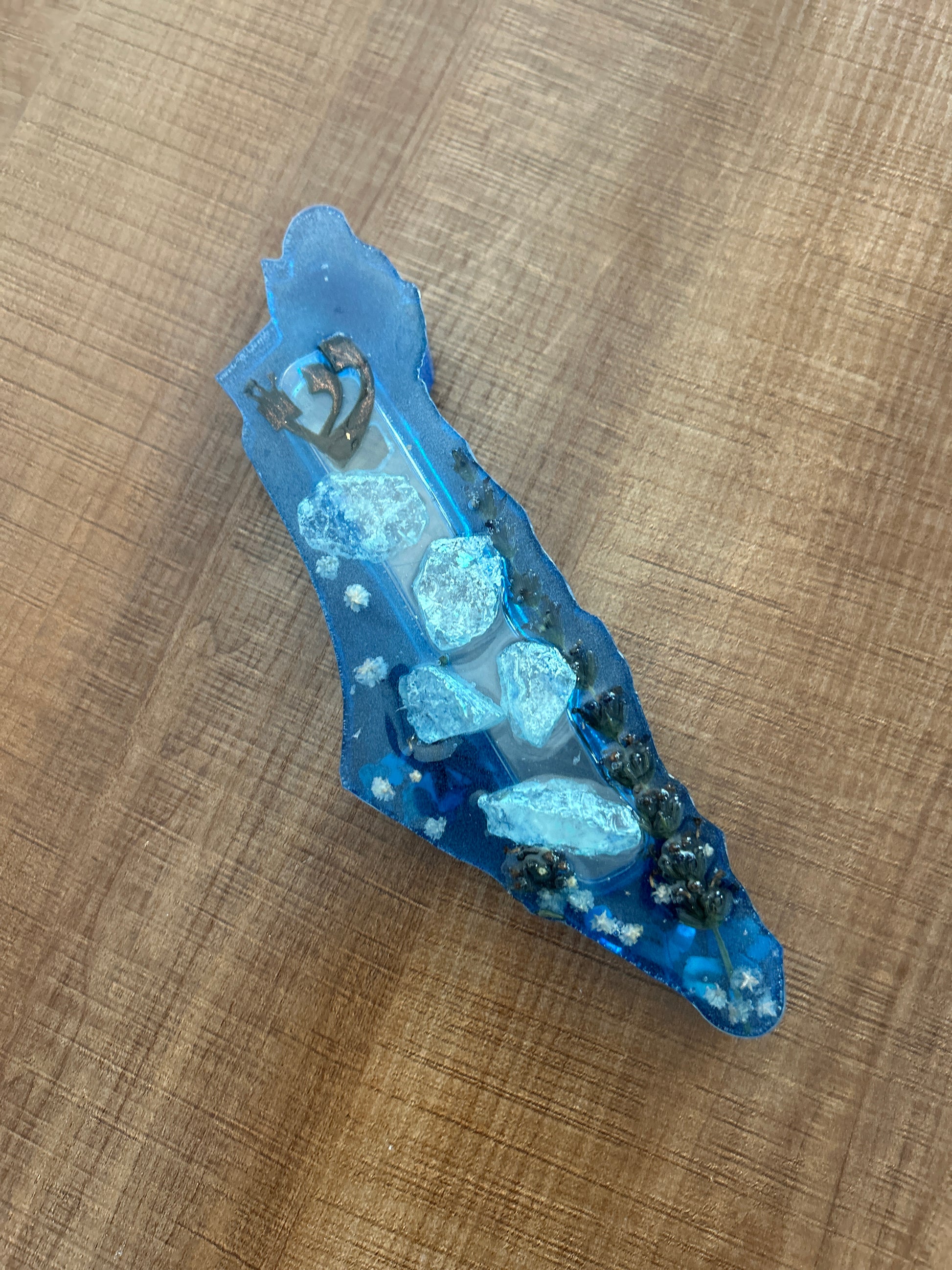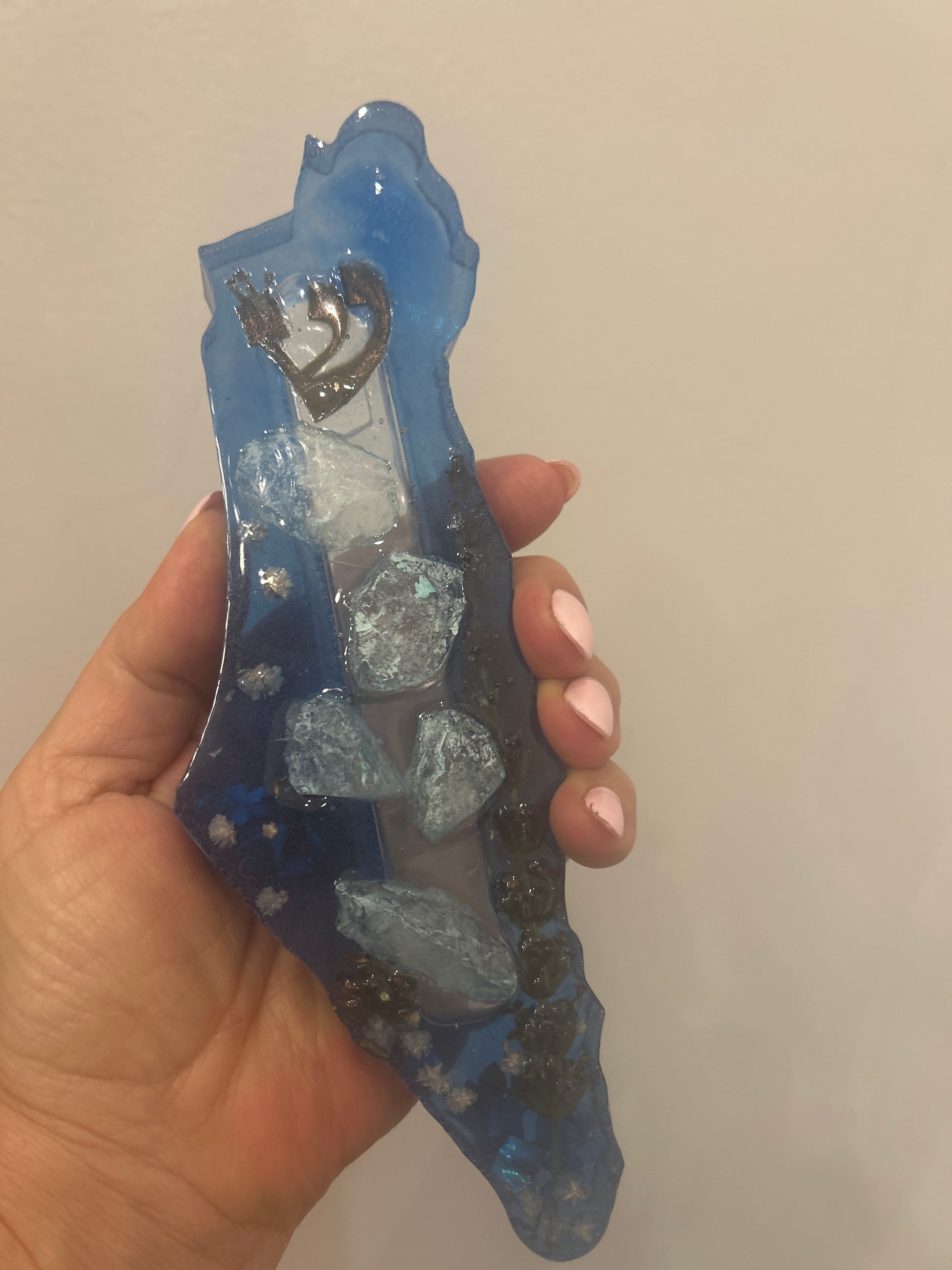 This elegant handmade Mezuzah Case, measuring 8" by 2 3/4" by 3/4", is crafted from epoxy, glass, and dried lavender for a unique blend of durability and natural beauty. Designed to protect a 5" parchment scroll (not included), each piece features a distinctive, one-of-a-kind design. Available special order in your choice of color at no additional cost, this sophisticated case offers both protection and personalized style, with shipping included in the price.